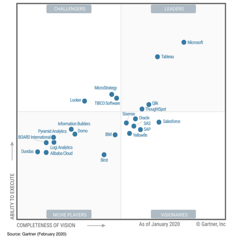Disponible desde finales de 2016, viene a ofrecer una alternativa más dentro de las opciones disponibles en visualización de datos. Si echamos un vistazo al cuadrante de Gartner de 2020 (que se encarga de recopilar el estado de las principales soluciones en un sector concreto del mercado, en este caso la visualización de datos), vemos que aún no aparece entre las principales opciones del mercado.