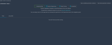 Al lanzar nuestro experimento SageMaker nos abrirá una nueva pestaña donde podremos monitorizar el avance de Autopilot en cada una de estas 4 etapas.