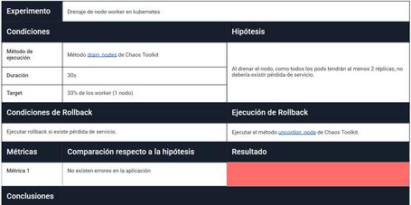 Buscamos comprobar que el sistema tiene una alta disponibilidad real. Es decir, si un nodo cae, los restantes deben ser capaces de asumir la carga de trabajo total del sistema. En este caso, optamos por drenar uno de los nodos en vez de matarlo totalmente.