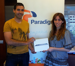El afortunado ganador del Ipad fue Rafael Aleman Cabrera, de Alicante, al cual podéis ver en la imagen, recogiendo su premio en las Oficinas de Paradigma.