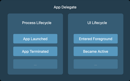 Hasta iOS12, las aplicaciones se comunicaban con el sistema mediante el App Delegate, el cual tenía dos responsabilidades principales: