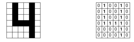 Supongamos que tenemos una imagen en blanco y negro de 6 x 6 pixeles, que se puede traducir fácilmente a una matriz de 1s y 0s:
