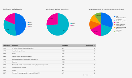Para la visualización de la matriz hemos desarrollado un dashboard en Google Data Studio, que nos permite fomentar la transparencia y tener un punto de datos objetivos para la inspección y adaptación; en palabras de mi compañera Fátima.