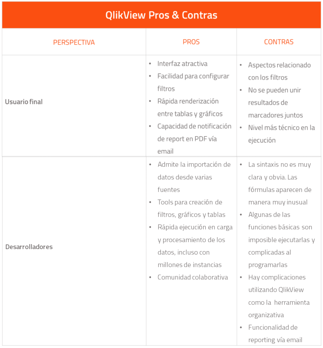 En resumen, Qlik puede ser una solución adecuada si tienes conocimientos para aplicar una interfaz programática, así como la capacidad de integrar las preguntas correctas desde el principio en caso de que sus datos se deriven de diferentes formas.
