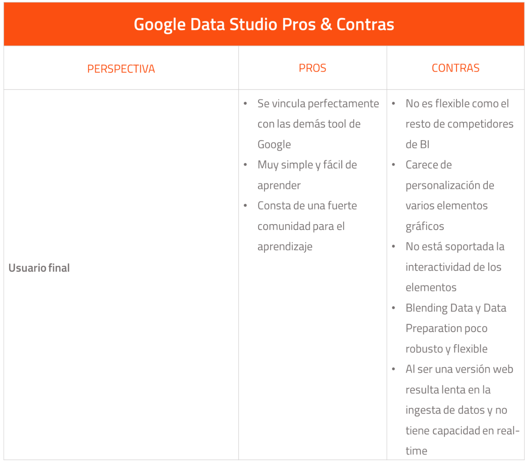 La herramienta tuvo un comienzo bastante decente. Google anunció este verano la adquisición de empresa Looker, la otra herramienta del cuadrante mágico, que será la competidora directa de Power BI y Tableau en herramientas de inteligencias de negocio, manteniendo Data Studio como mejor candidata para reporting y de uso gratuito.