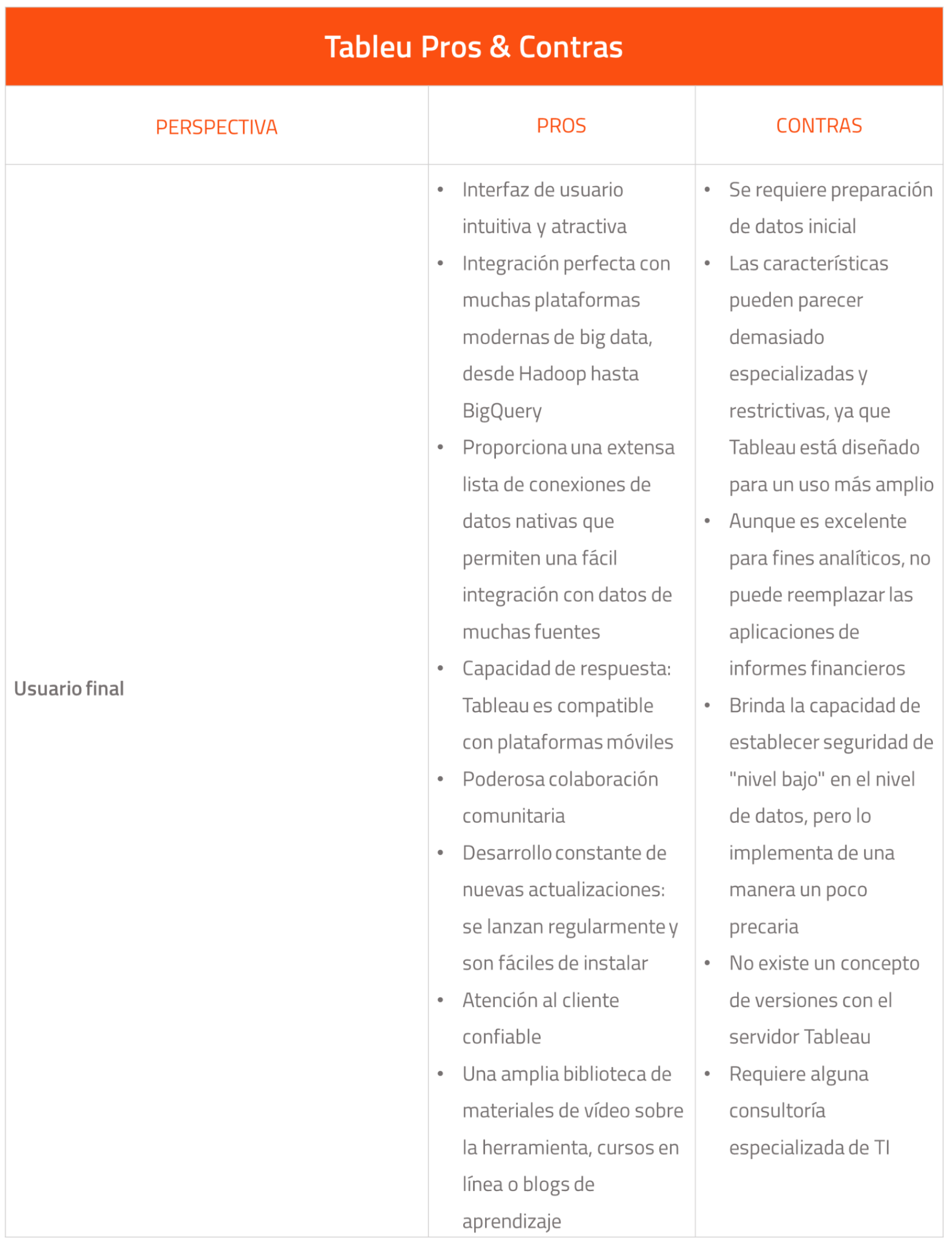 Ninguna otra solución de BI puede hacerlo más fácil que Tableau y otorga a los usuarios un poder asombroso. Es lo suficientemente fácil para un usuario de negocios informal y, a la vez, tan poderosa como las herramientas de desarrollo.